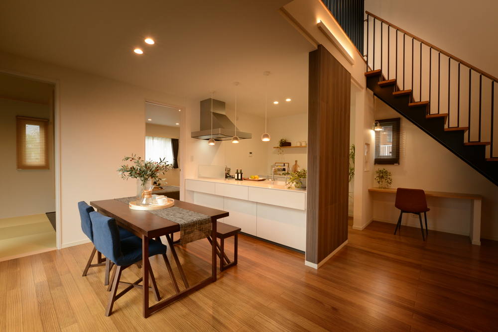 こちらのモデルハウスは、4LDK・約34坪の2階建て。東南の角地の好立地で開放感がありながら、ブラインドウォール付きの中庭で外部からの視線を完全にカットし、プライベート性を確保。さらに、ZEH(ゼロエネルギーハウス)を採用し光熱費がほぼゼロになり家計にも優しく、高い断熱性とLDKの床暖房で冬でもとても暖かく暮らせます。20年30年と住まうことを考え、寝室は1階に配置、和室とともに将来は平屋的な暮らしが可能です。リモートワークスペースも完備され、これからの生活スタイルにも対応しています。